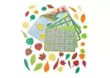 В наборе 20 заданий и 36 листочков различных типов, цветов и размеров.