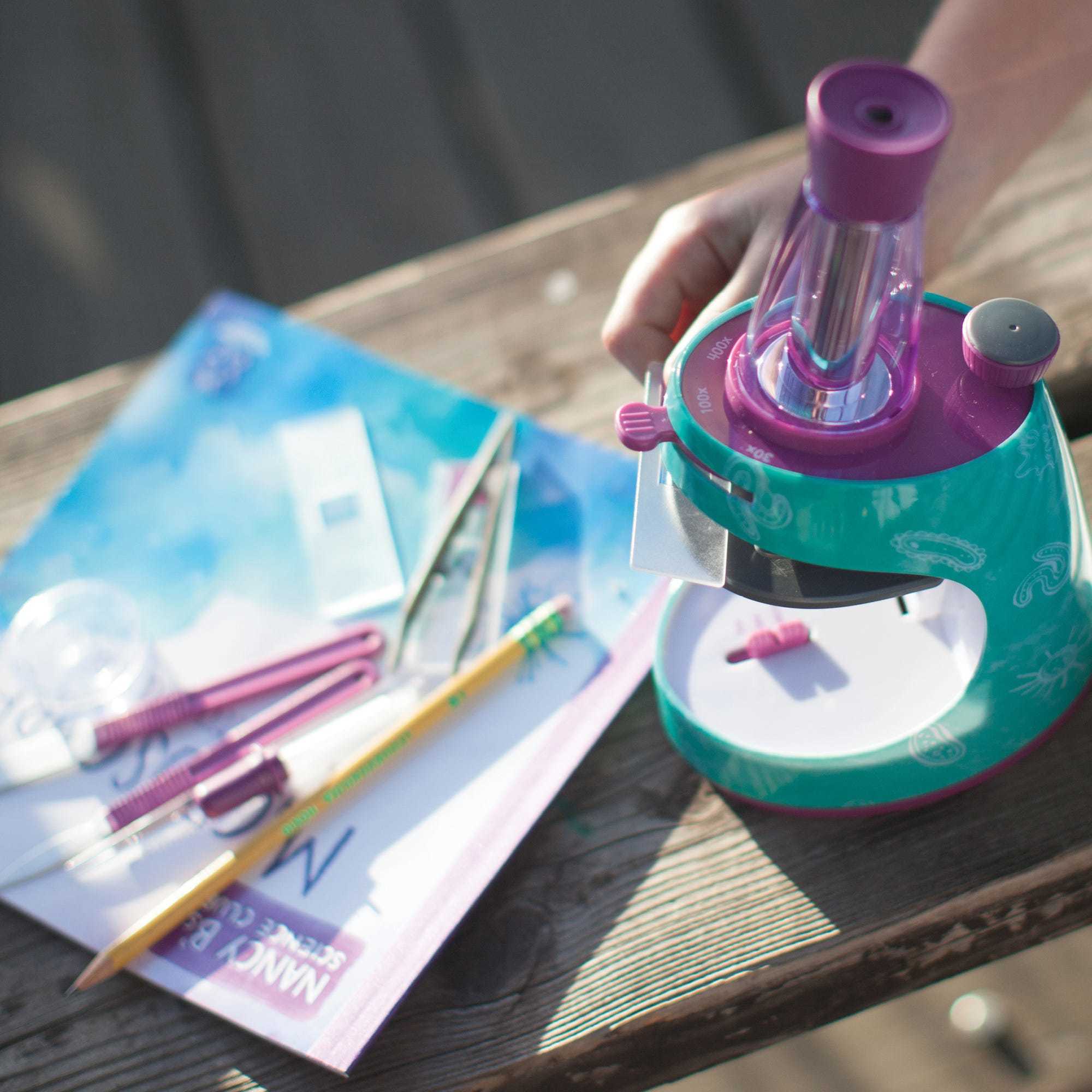 Дети могут создать свой собственный научный клуб с помощью микроскопа и журнала наблюдений.