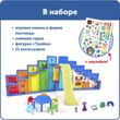 Набор содержит разнообразные элементы и аксессуары, которые помогут ребёнку изучить числа, геометрические формы, счёт и арифметические операции.