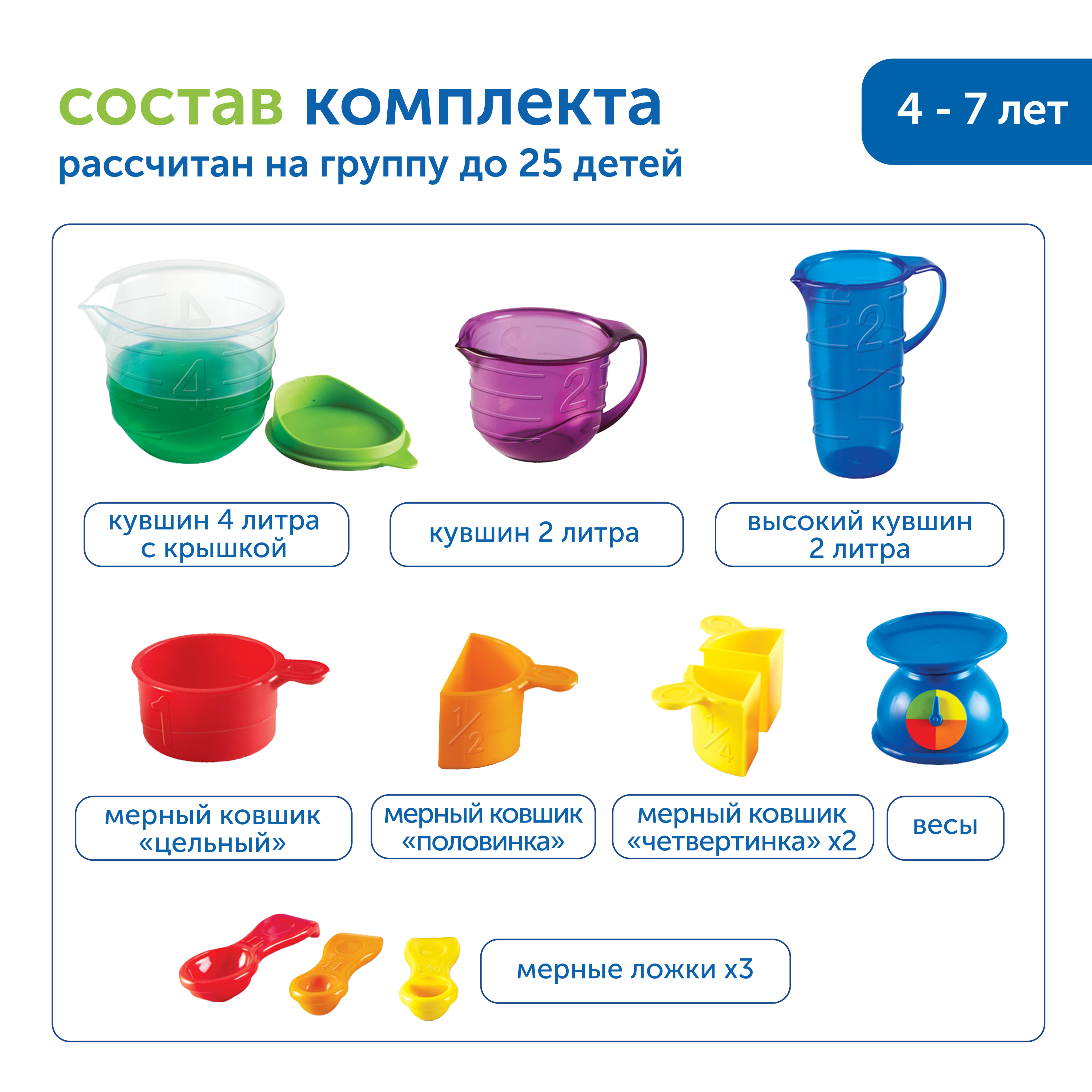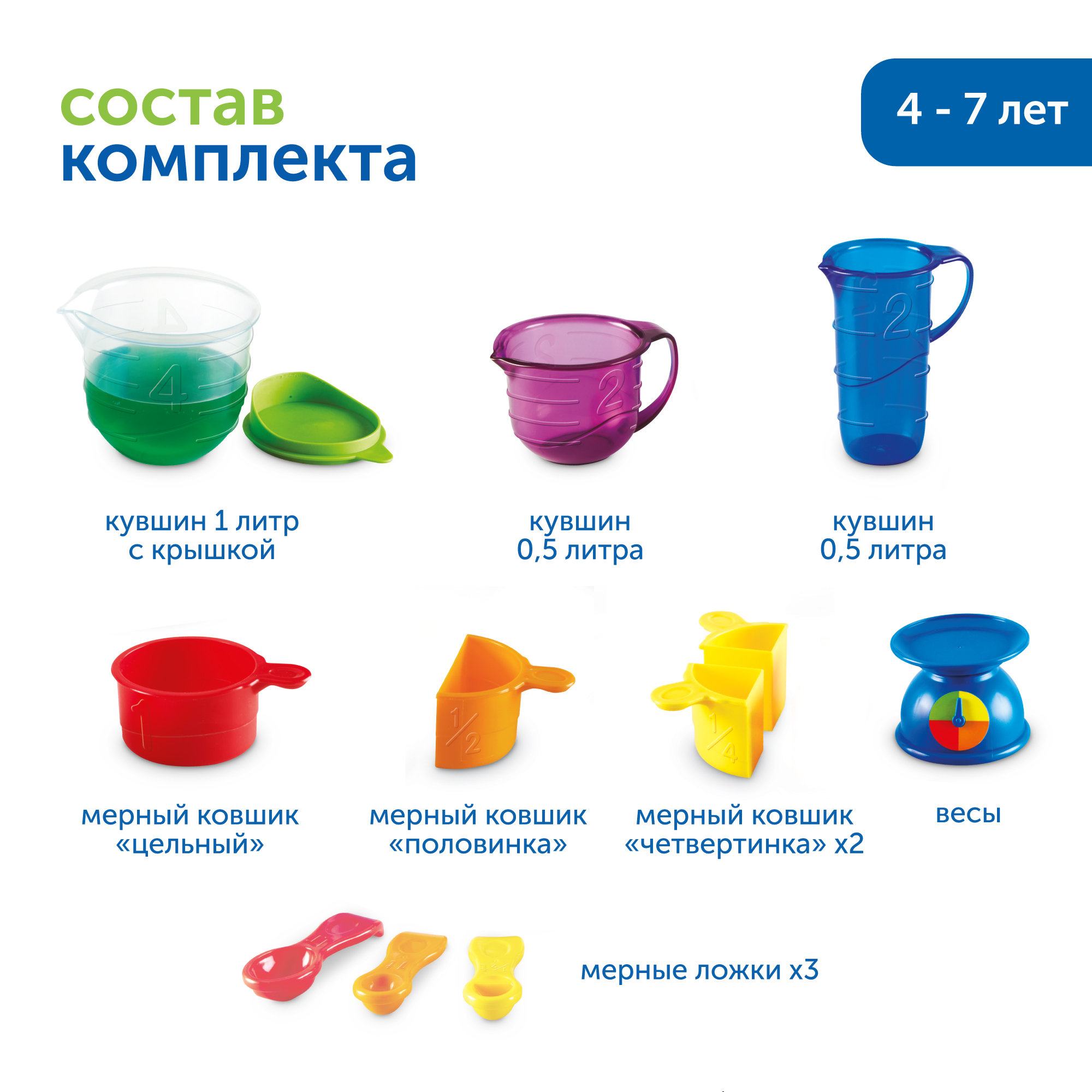 • Учиться сравнивать предметы по объему, размеру и весу с использованием мерных емкостей и весов