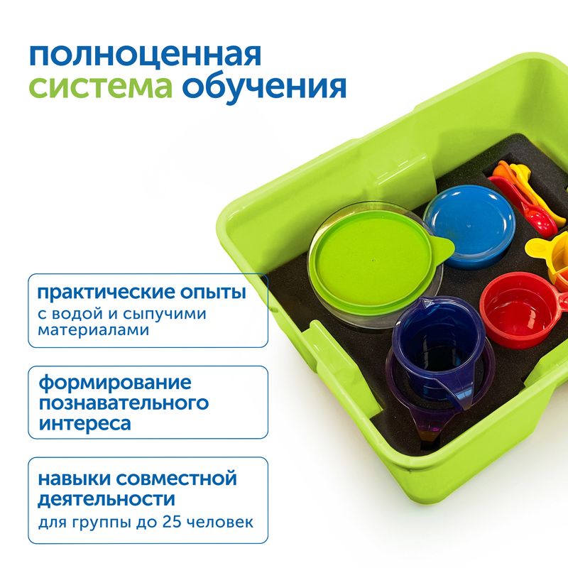 Модуль «Экспериментирование» — это готовое образовательное решение, которое знакомит детей с основами исследовательской деятельности, измерения и анализа через практические опыты с водой и сыпучими материалами. Набор пробуждает интерес к познанию окружающего мира и формирует базовые навыки, необходимые для дальнейшего изучения естественных наук.